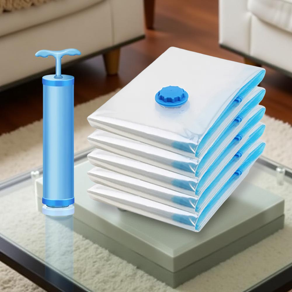 Optimisez l'espace de rangement avec notre sac sous vide réduisant le volume de stockage de 80%